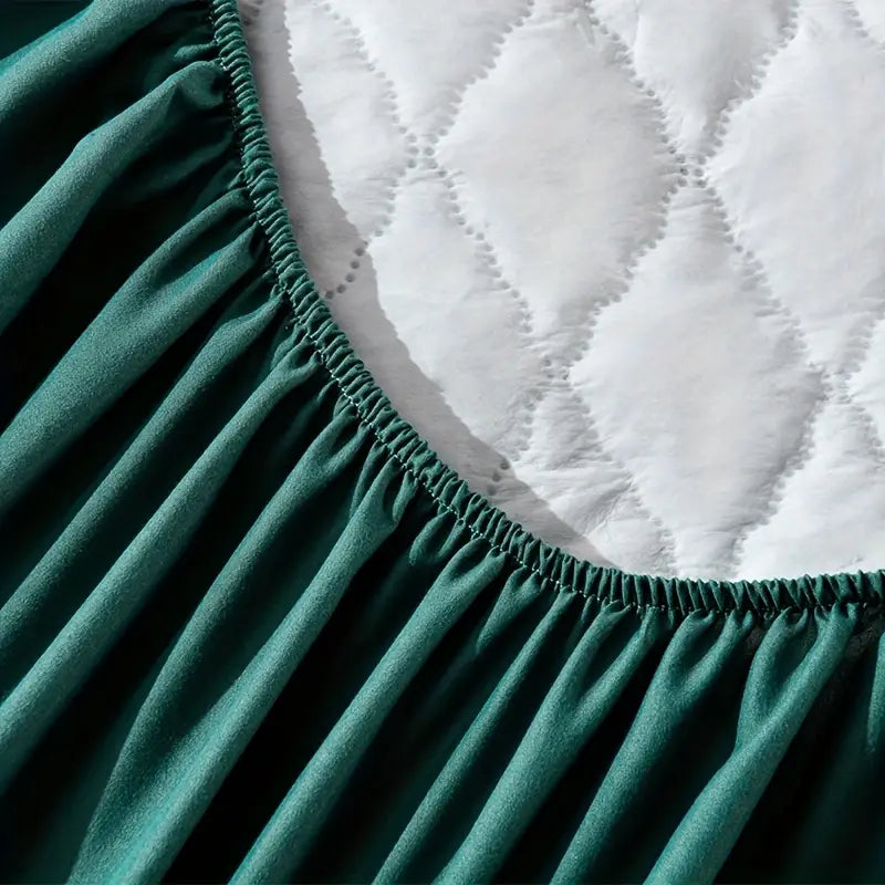 Protect your mattress and improve your sleep comfort with this ultra-soft, thick mattress protector. Made of breathable polyester and featuring a subtle embossed diamond pattern with Soundwave technology, this protector not only protects against wear and stains but also provides extra softness for a relaxing night's sleep.