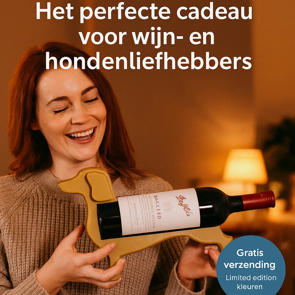 This wine bottle holder is designed and crafted entirely by the artist himself, adding a personal and exclusive touch. Ideal for wine lovers and dog lovers who appreciate unique home accessories. Available in a variety of colors to perfectly complement your interior.