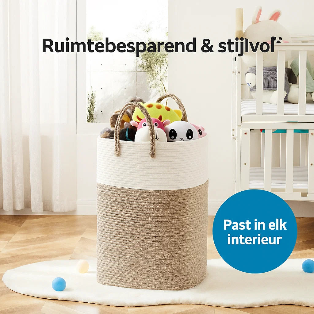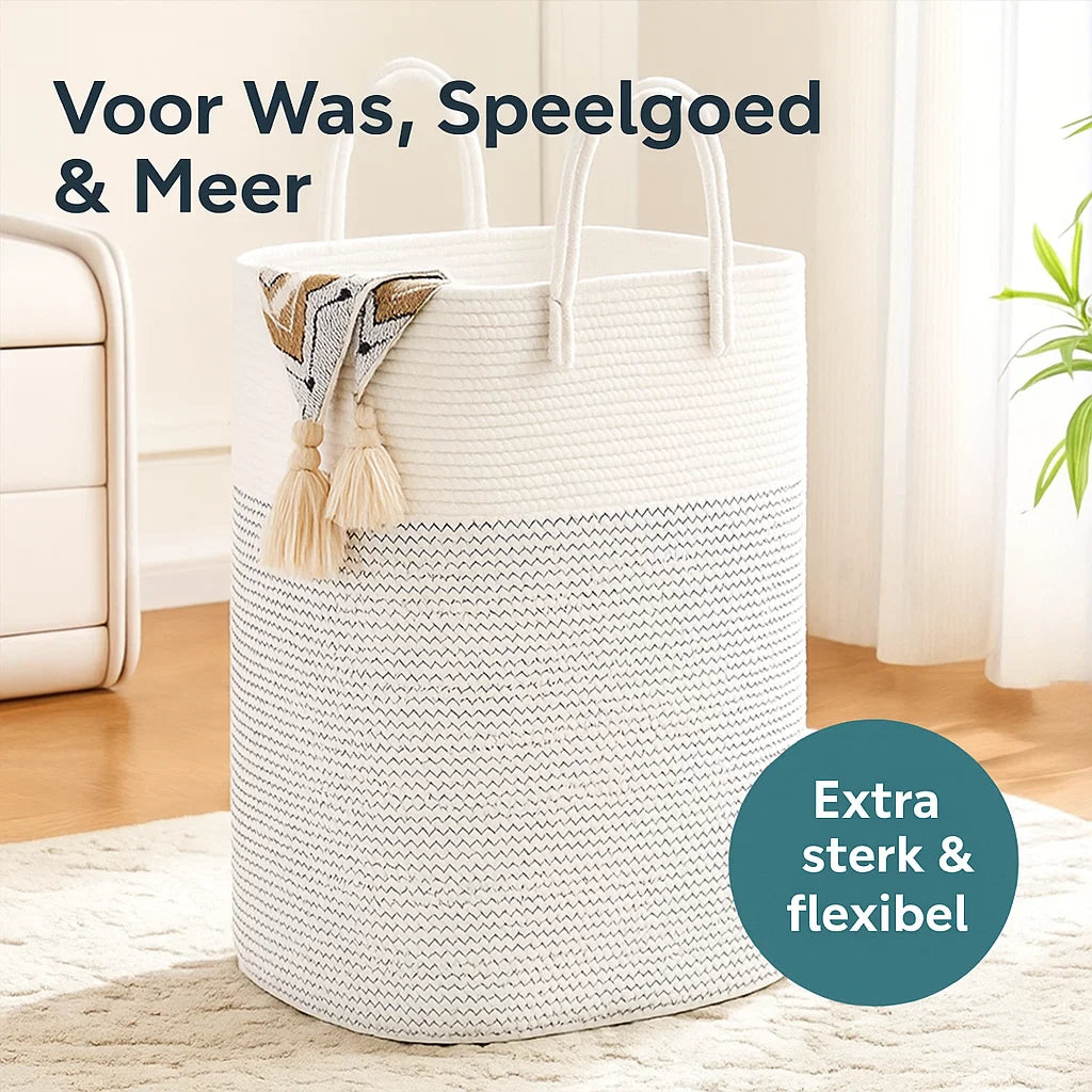 Bring peace and extra storage to your home with the HomeWeave™ XL storage basket . This spacious 100-liter basket is made of durable woven cotton and combines functionality with a stylish, natural look. Ideal for laundry, toys, blankets, towels, or pillows — a multifunctional must-have for any modern interior.