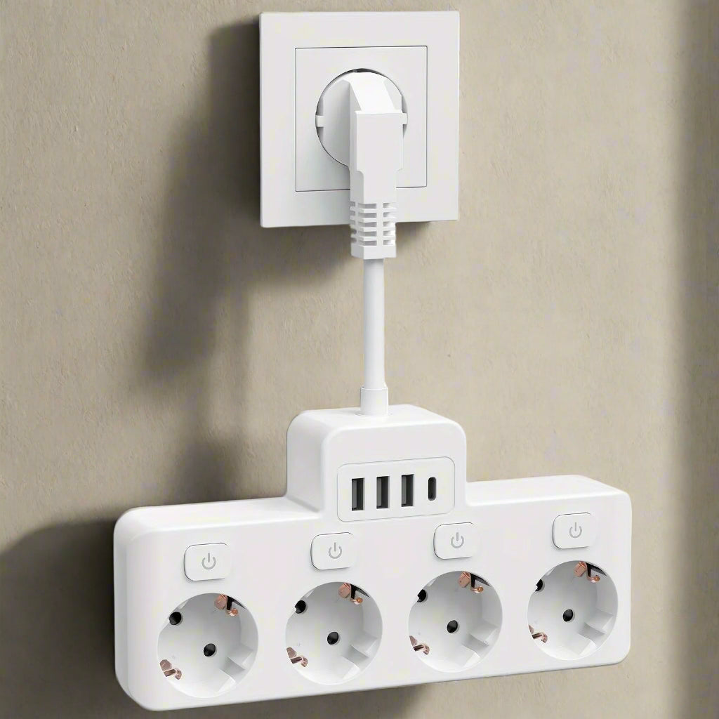 Often running out of outlets for all your devices at home or in the office? The PowerHub Adapter offers the ideal solution with 4 outlets and 4 USB ports, all packed into one compact device. Charge your smartphone, tablet, and other devices simultaneously without needing multiple adapters.