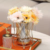 Give your interior a stylish and modern look with this geometric metal vase with a glass insert. The elegant metal frame with a metallic finish creates a luxurious, sculptural look, while the glass inner vase is perfect for artificial flowers, decorative branches, or atmospheric candlelight during a romantic dinner.