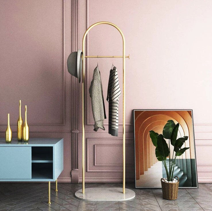 • Robuste Konstruktion: Mit seinem stabilen Metallrahmen und dem festen Marmorsockel steht diese Garderobe sicher an ihrem Platz und kann viel Gewicht tragen, ohne zu wackeln.