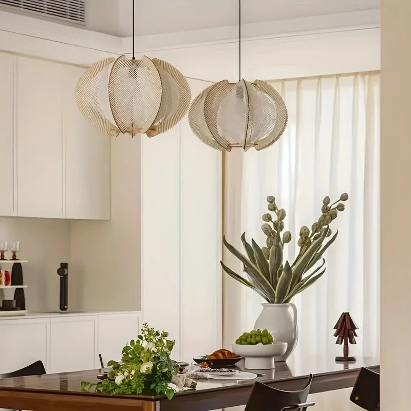 De Japandi Wabi-Sabi touwlamp brengt rust, warmte en minimalisme in je interieur. Geïnspireerd door de Japanse Wabi-Sabi esthetiek straalt deze lamp eenvoud en natuurlijke schoonheid uit. Met zijn afmeting van 40 cm breed en 27 cm hoog is hij ideaal boven de eettafel, in de woonkamer of slaapkamer, maar ook een sfeervolle toevoeging aan een stijlvolle bar of homestay. Het gebruik van touw met een houtnerf-look zorgt voor een warme, organische uitstraling die perfect aansluit bij Japandi interieurs.