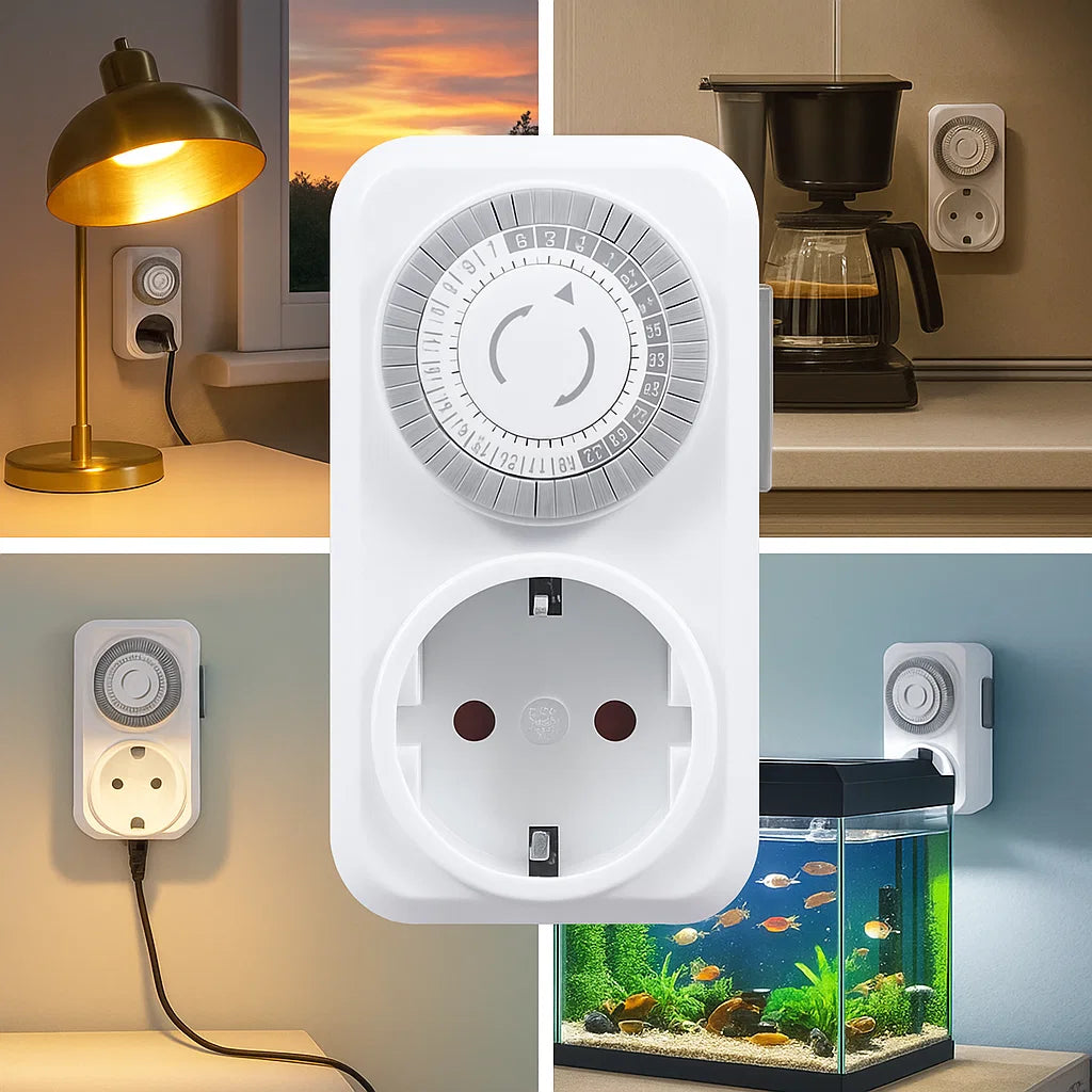 Regel eenvoudig wanneer je apparaten aan- of uitgaan met deze mechanische tijdschakelaar. Ideaal voor verlichting, pompen, ventilatoren en andere huishoudelijke apparaten. Dankzij de gebruiksvriendelijke 24-uurs cyclus kun je de stroomtoevoer precies instellen op jouw schema – energiebesparend, praktisch en betrouwbaar.